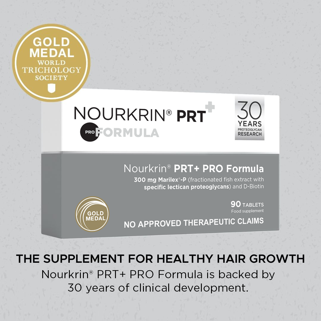 Nourkrin® PRT+ PRO Formula is a clinically proven supplement specially formulated for individuals experiencing hair thinning or hair loss. Its unique action targets the restoration of proteoglycans, vital nutrients that play a key role in maintaining strong, healthy, and active hair follicles.